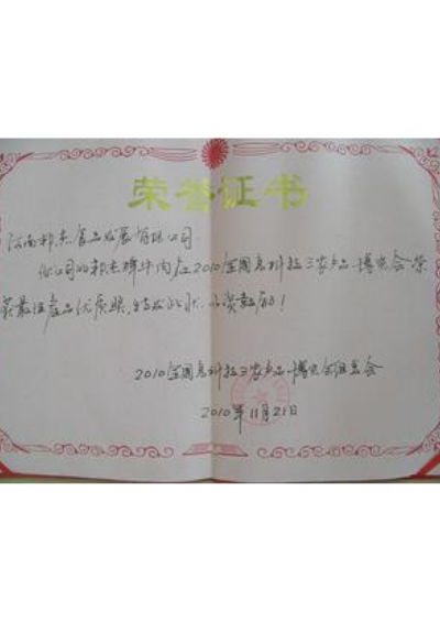• 榮譽證書
